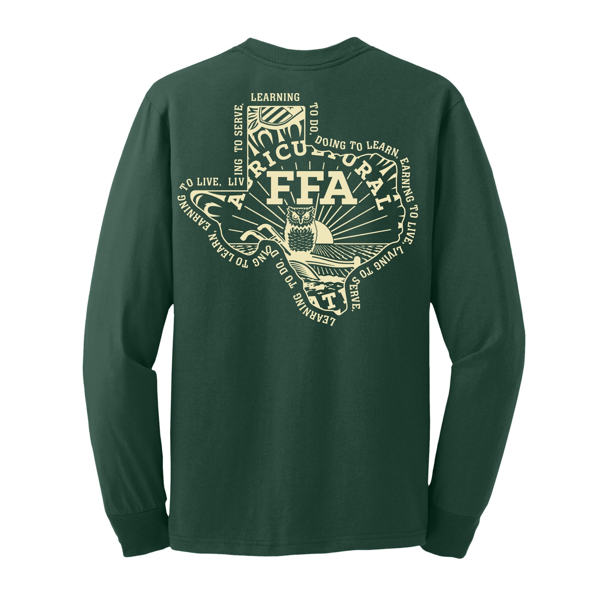 Support Hempstead FFA with pride! This super soft green long sleeve tshirt is printed in cream. All profits go straight back to Hempstead FFA!